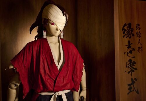 今回展示される「縁壱零式」は、「無一郎」との激しい修業で破壊された腕、人形の質感や着物など、「炭治郎」との修業のために再起動された時の状態を、USJの開発チームが細部までこだわり抜いて創り出し、完全再現した。(yahoo! ニュース)
