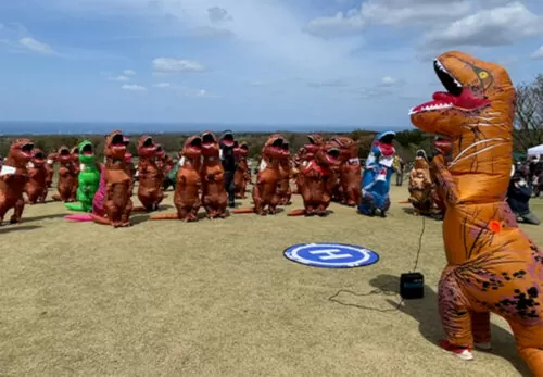 「運動会が恐竜パークに?ティラノサウルスレースのスーツのレンタル開始!」